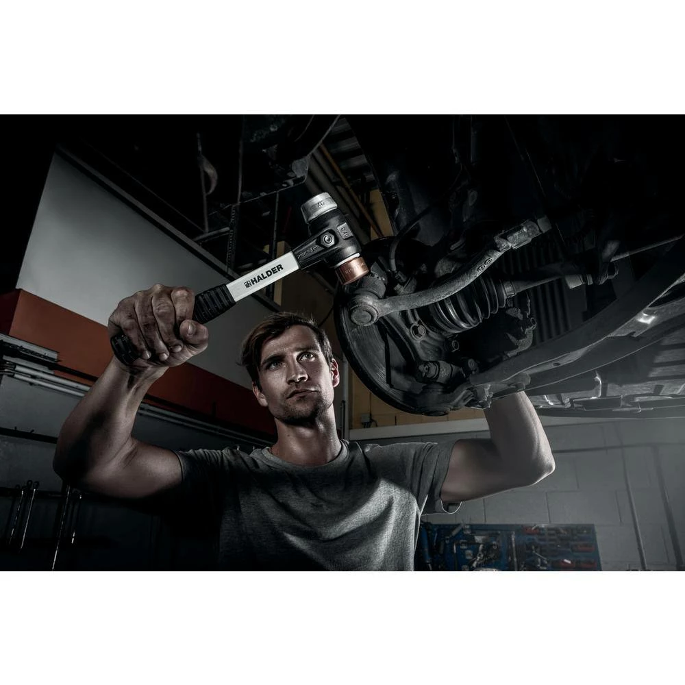 The Halder Simplex Mallet is the signature hammer in the Halder line. This patented hammer has a split housing design that is made from Heavy-Duty cast iron. This split housing allows it to be take apart and the components can be replaced when worn or damaged. It solidly locks in the variety of replaceable insert faces. The faces are made of several different durable materials; from soft rubber to medium hard plastic to hard nylon. Halder also offers aluminum and copper faces for hitting very hard surfaces such as hardened steel (copper faces are only compatible with Halder Simplex with reinforced cast iron housing; call for details). The variety of face materials and sizes allow the Simplex to be used in many applications such as manufacturing, automotive, landscaping, furniture making, flooring and machining just to name a few. The Simplex features the highest quality hickory handle which is protected by an extra-large overstrike area formed by the cast iron housing. This truly is a durable hammer and will be with you for many years.