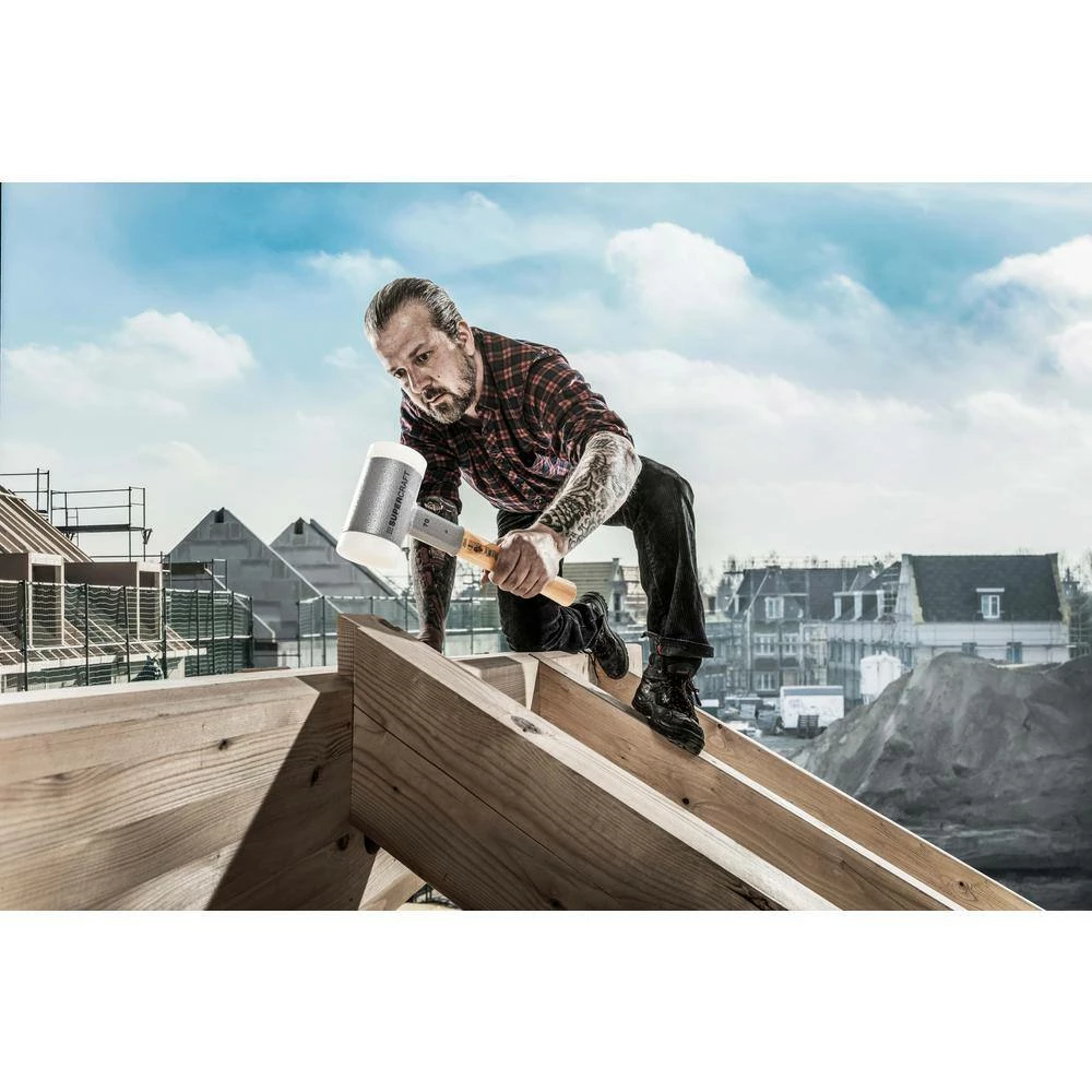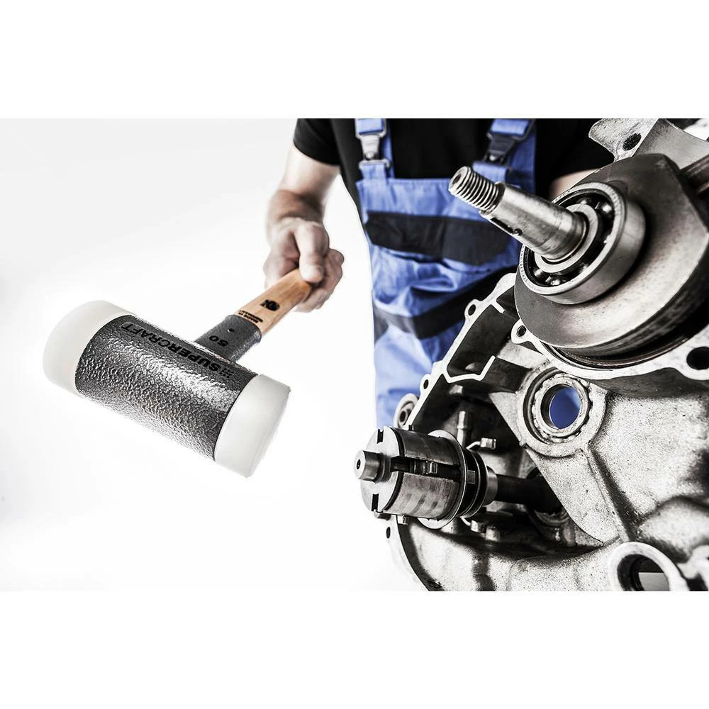 The Halder Supercraft non-rebounding, dead blow hammer virtually eliminate bounce back and vibration, making this a very worker friendly tool. Its high quality construction includes a completely welded and sealed canister filled with steel shot. This steel shot absorbs the energy when struck. The Supercraft features extremely durable nylon face inserts that allow for a powerful strike yet will not leave marks. These faces can be replaced when worn out, making this an extremely long-lasting tool. This is an industrial grade dead blow hammer. This hammer was originally designed to hit steel as a replacemnt to those using brass, bronze, lead and steel hammers in industrial settings. It will not mushroom or produce dangerous sharpnel making this a much safer alternative to traditional steel hammers. There is also no way that the steel shot can escape the welded steel housing which is a constant concern with normal polyurethane covered dead blow hammers. The nylon is very strong and will not crack. Small sizes are great for assembly, leather and craftwork, metalworking. The larger size SuperIt is perfect for hitting steel tooling, pins, concrete forms and stakes, equipment or anything that you need to hit hard. These hammers come in sizes between 9 oz. up to 20 lbs. You will find a lot of users for these super handy dead blow hammers.