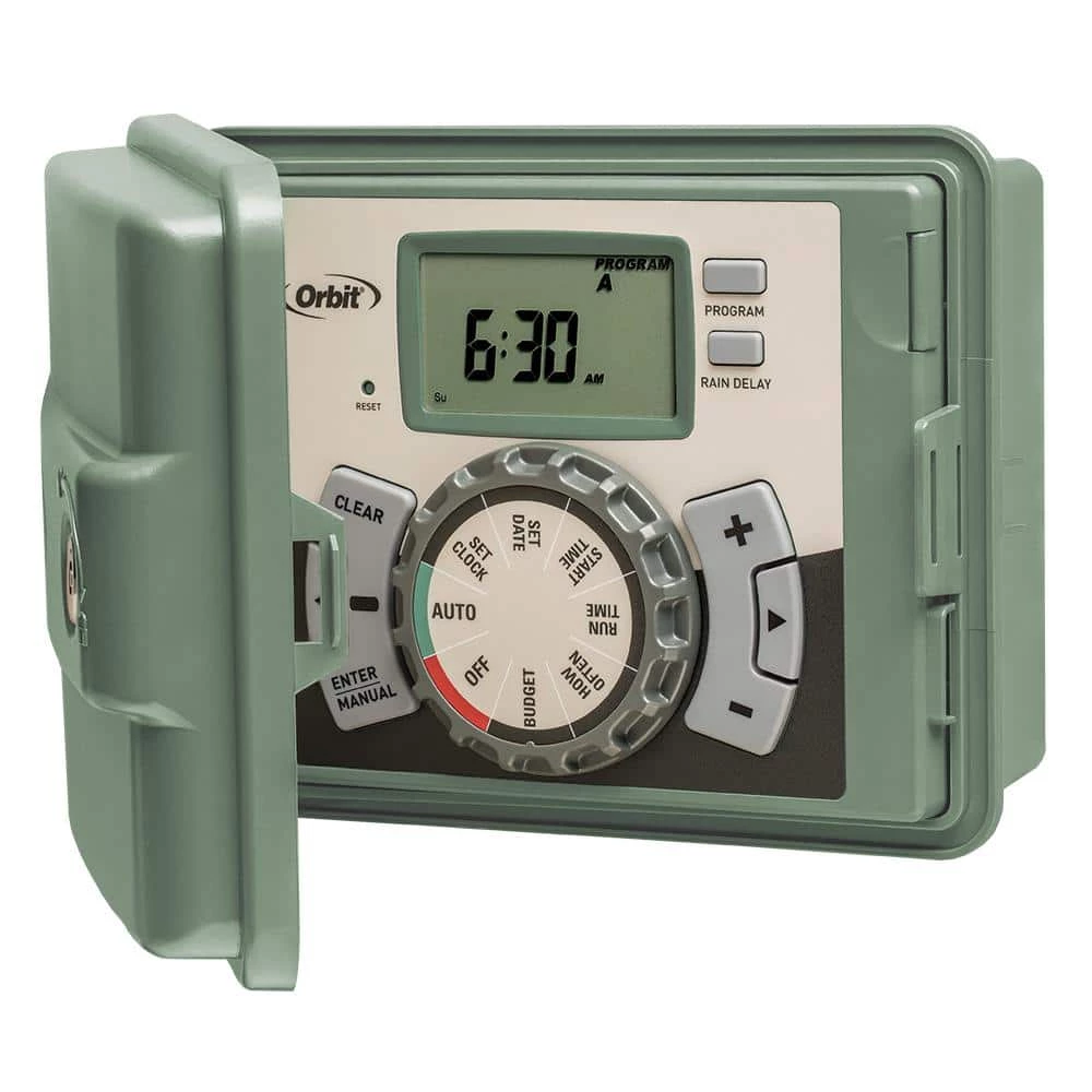 The Orbit 4-Station Indoor/Outdoor Electric Timer offers 3 programs to help you set a flexible watering schedule for your lawn. The 120-Volt timer includes an LCD screen, a manual dial and an Easy-Set Logic system that help make it easy to use. Timer is green in color and easy to read and understand set up directions.