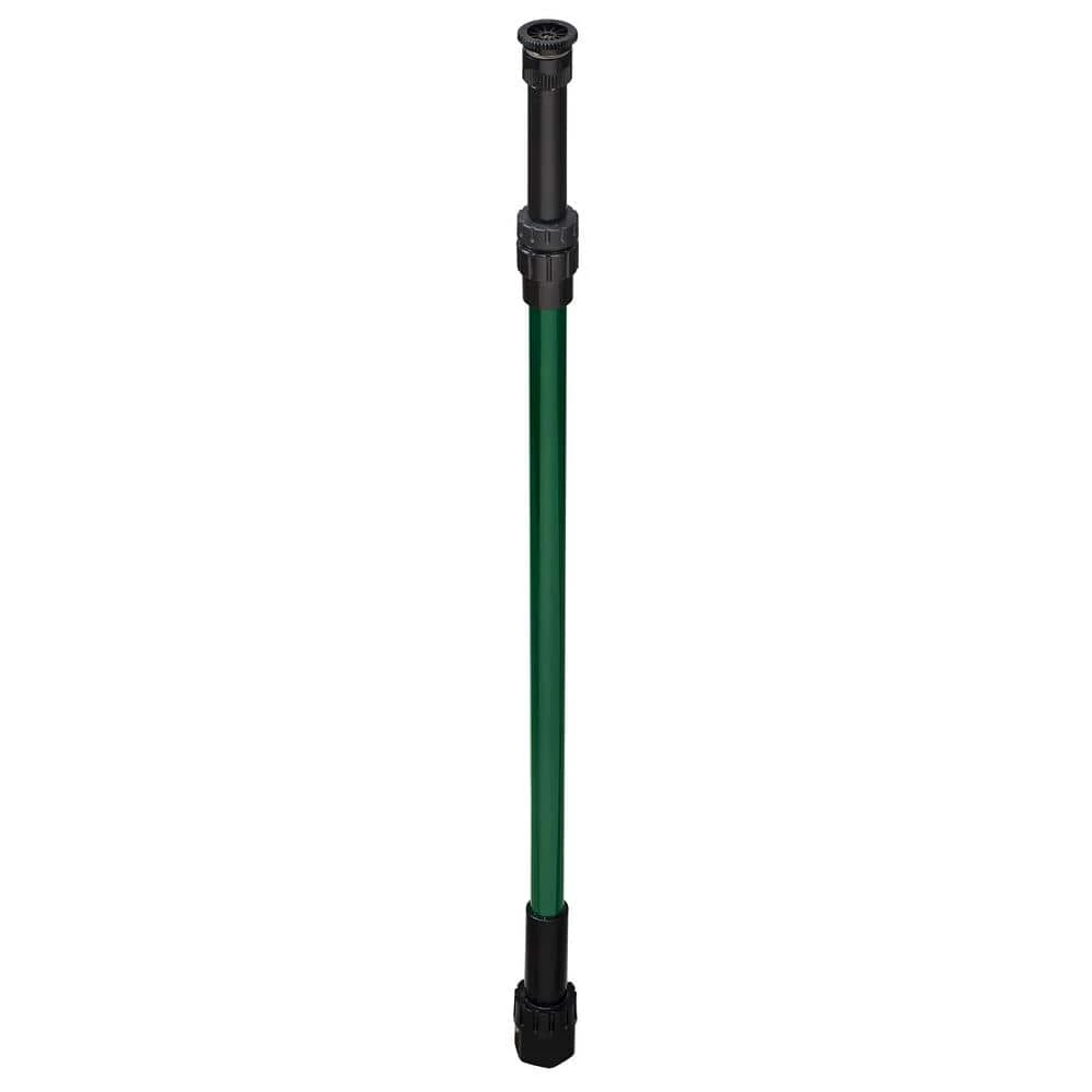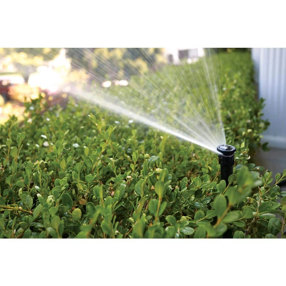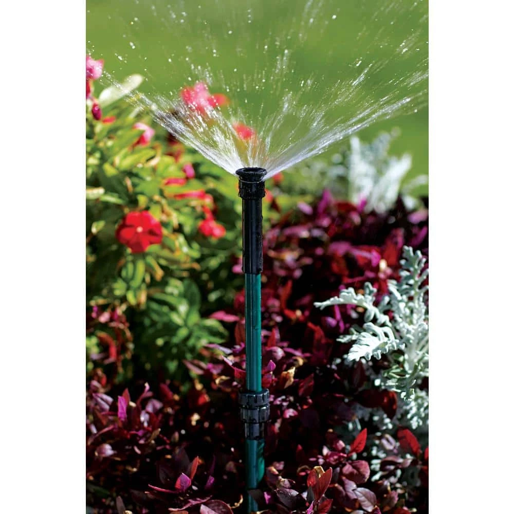 The height on this aluminum riser can be adjusted from 16 in. to 30 in. tall as plants and shrubs grow. The nozzle adjusts to spray in a part to full circle pattern and includes a distance adjustment screw. An easy to clean filter helps prevent clogging. Pressure regulation keeps water from being lost to inefficiencies, so more water gets to your plants where you want it. A pre-installed pressure regulator delivers a constant 30 psi the precise pressure at which spray nozzles operate best. Delivers even and consistent water coverage over a nozzle’s radius. No over spray or misting due to an over pressurized system.