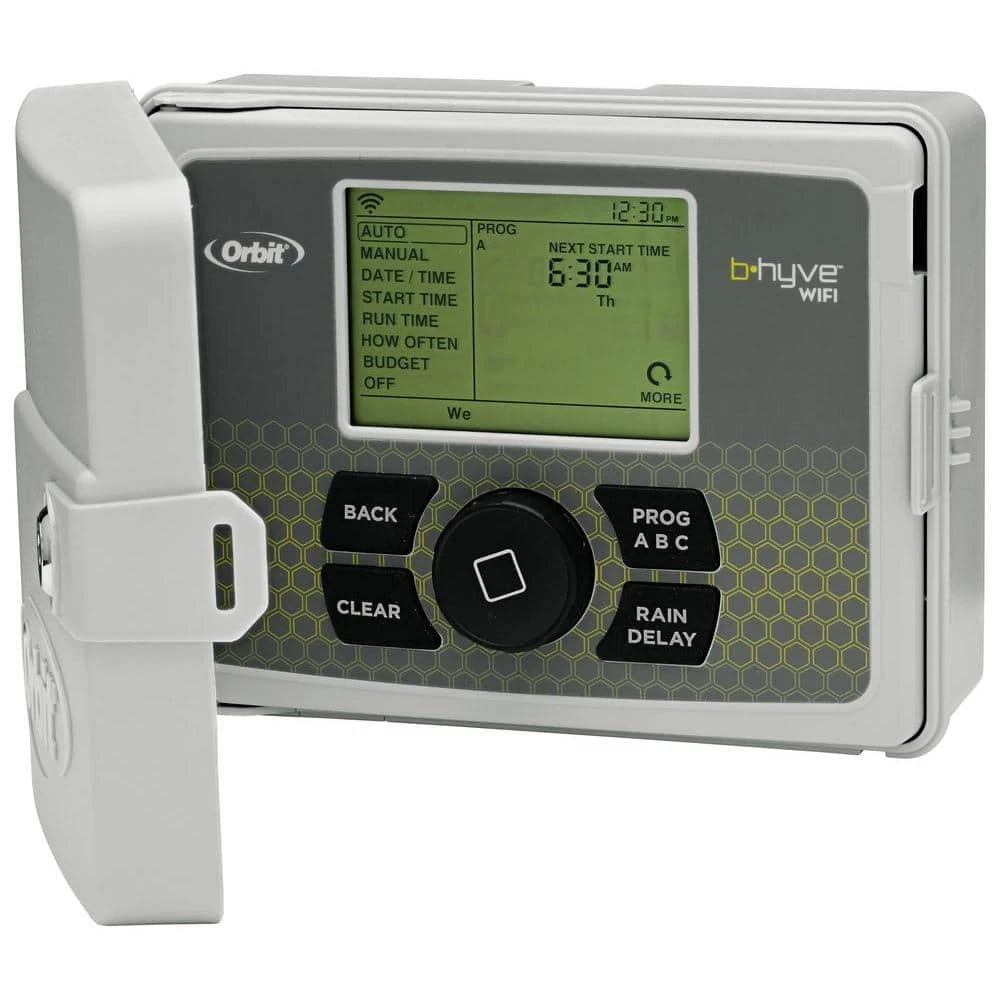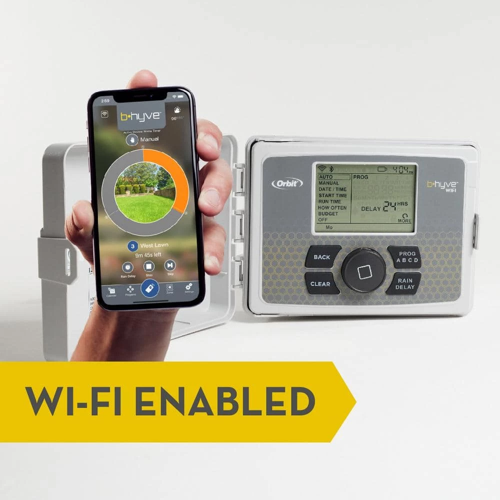 - The Orbit B-hyve Wi-Fi sprinkler timer comes in a weather-resistant case, allowing you to mount your timer indoors or outdoors without risk of weather damage and a locking cabinet that keeps your timer safe from harm