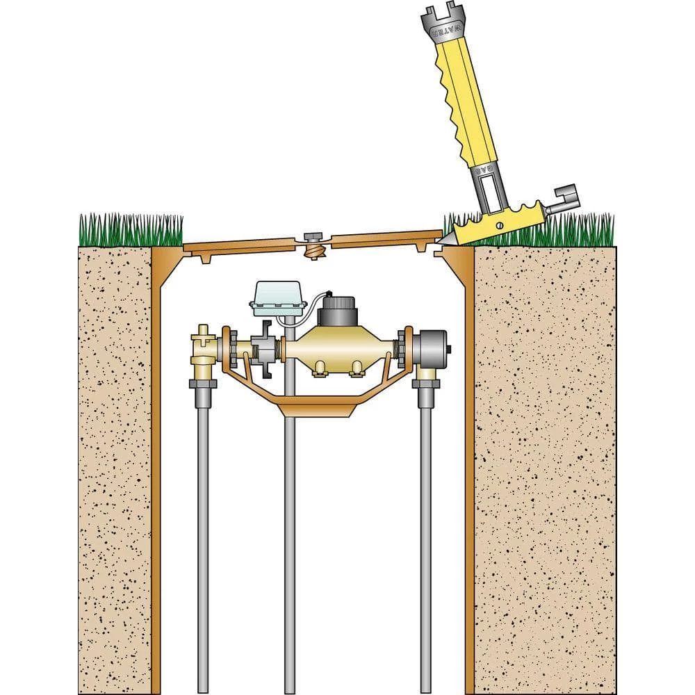 - Use as a meter cover tool, water and gas main shut-off key or a pick for prying meter covers open