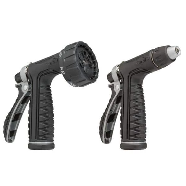 Have precise control over water pressure with the easy-to-use trigger of this Pro Flo Rear Trigger Dual Pack. Seven adjustable spray patterns provide options for a wide range of watering needs. For comfort, it includes an insulated grip. A non-corrosive exterior offers durability.