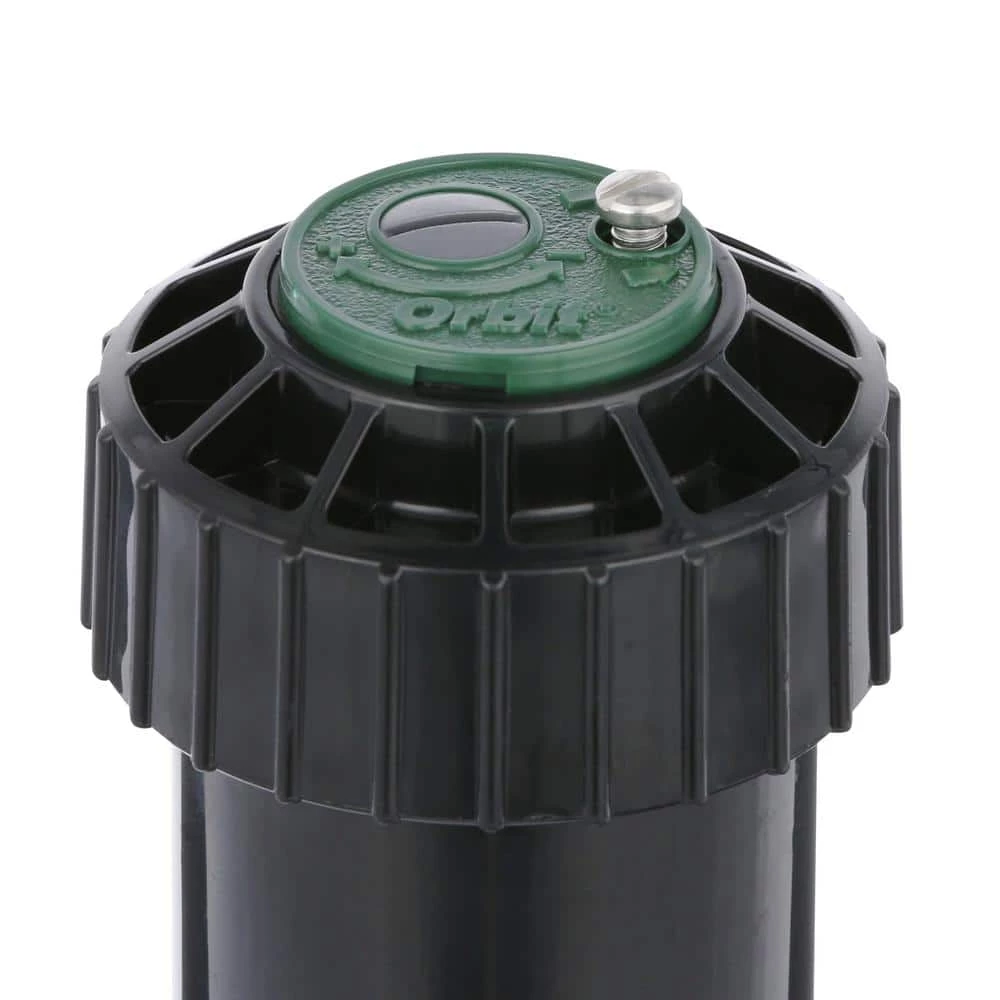 The Orbit Saturn III Plastic Pop-Up Gear-Drive Sprinkler Head can cover 15 ft. to 30 ft. in medium-sized areas. The sprinkler head is 4 in. tall and can adjust its arc from 40 degrees to 360 degrees. Precision-engineered nozzles and spray patterns help provide uniform coverage and help eliminate dry spots.