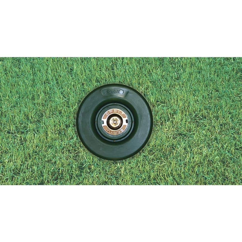 The 5-inch spray guard protects your sprinklers from lawn overgrowth that can affect optimal spray patterns. Made of durable plastic construction, the guard can withstand extreme temperatures and impact. Molded in a solid green color to blend with your lawn. Fits spring loaded pop-ups, gravity pop-ups and fixed pattern sprinklers of all manufacturers.