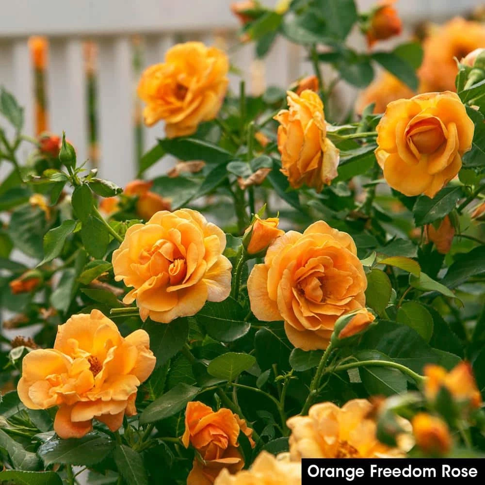 Orange Freedom Shrub rose is a new variety of shrub rose with great disease resistance, clean foliage, and a great shrub form. This orange colored rose makes a great hedge and tolerates a sunny location with well-drained soil. Unlike most of the traditional shrub roses on the market, the Freedom Rose varieties have a traditional flower form. Complete a rainbow of color in your garden by planting all of the various Freedom Shrub Rose varieties!
