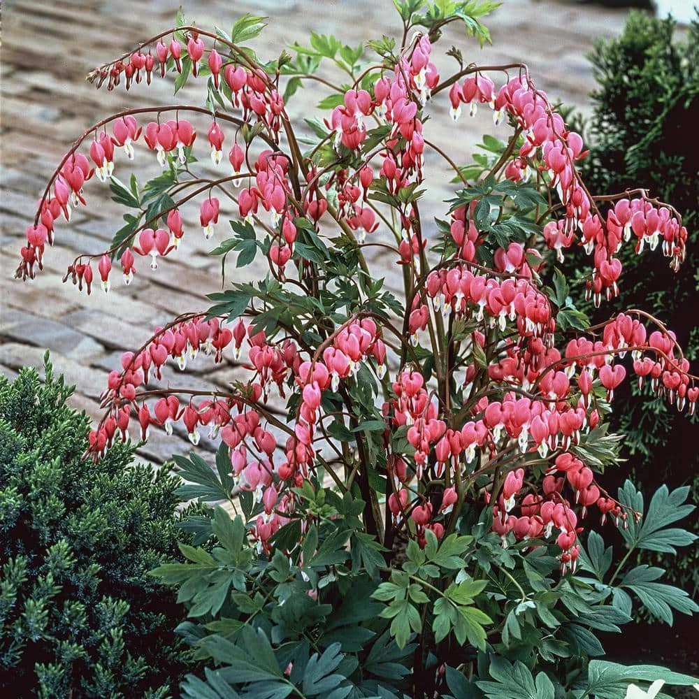 Old-Fashioned Bleeding Heart (Pink) is a traditional favorite, 1 of the many lovely woodland garden flowers that bloom in the spring. Bleeding Heart is the only bloom in nature that is shaped like a heart. Dainty little pink flowers dangle as if in rows from arching stems. The plant’s fern-like leaves add an elegant touch.