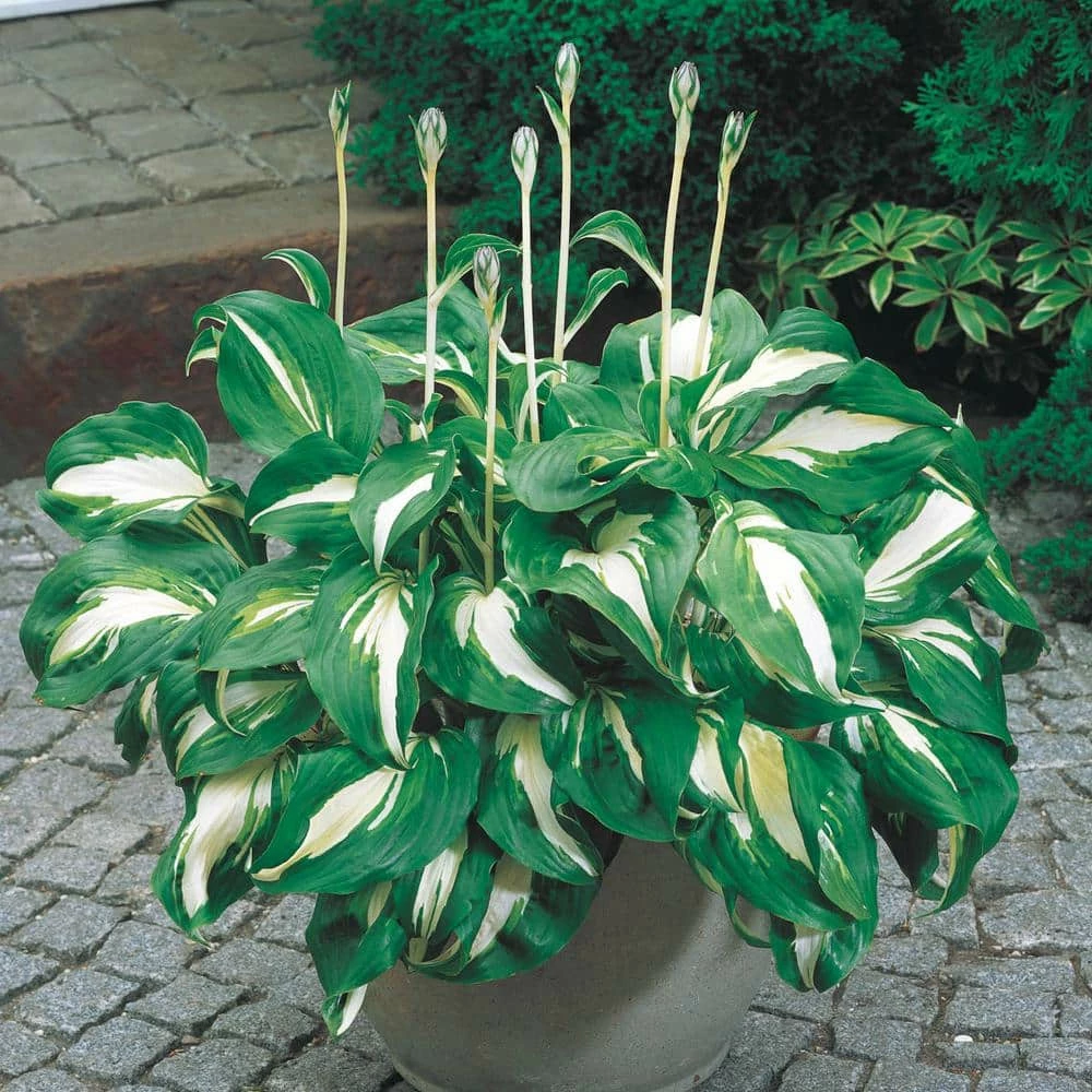 Made for the shade, handsome Mediovariegata Hosta is alight with bright green leaves that have soft white centers. In late Summer, it blooms with pretty little purple, bell-shaped flowers on long stalks. It’s the perfect perennial for planting along a shadowed slope or in a wide drift under a stand of undemanding shade trees. Hosta are famously low maintenance and this variety is no different. It grows unaided in darkened corners of the landscape to a height of 18 in. to 24 in. and a mature width of 24 in. to 36 in. In late Summer, arched sprays of pale lavender flowers appear to give Mediovariegata a completely different look. Plant in borders, decorative containers or rock gardens. Tough as nails, reappearing bigger and better every year.